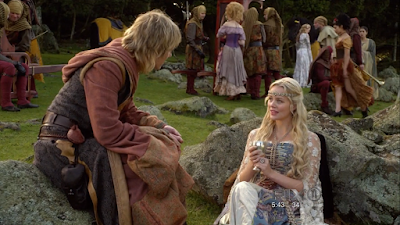 Spinning Zed a story about how his memories have faded with age, Shota promises to bring him back to his full strength by casting a magic spell to restore his youth. This she does, and kudos to the casting department for finding a guy who credibly looks like Bruce Spence in his youth, from his height to his hair to his elongated facial features.